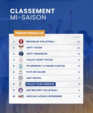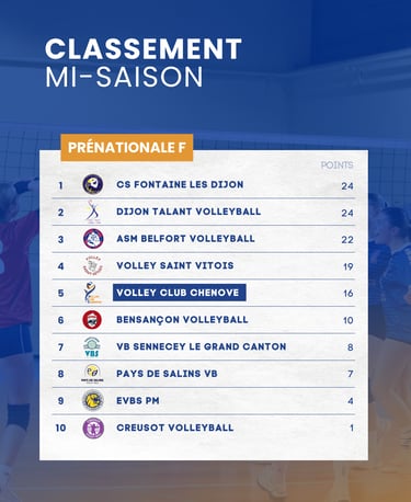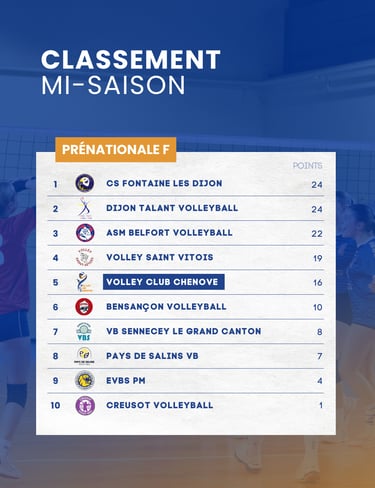 Ce bilan de mi-saison 2025-2026 pour nos équipes de Nationale 3 et Pré-Nationale montre un chemin plein de promesses. Suivez la progression de nos équipes et restez à l’affût des prochaines rencontres. Allez Chenôve, et à bientôt sur le terrain !