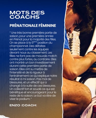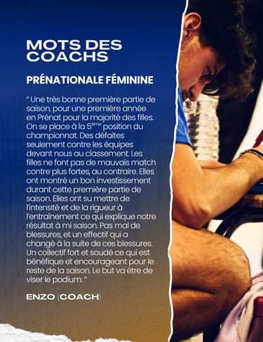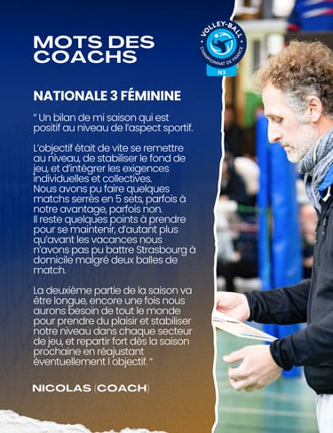 Les coachs ont partagé leurs réflexions sur ce début de saison. Dans l'ensemble, nos équipes se sont montrées compétitives et déterminées. Plusieurs joueurs ont fait preuve d'une progression significative, ce qui augure bien pour la suite. Les matchs de Nationale 3 ont été particulièrement intenses, avec des combats acharnés sur le terrain.
