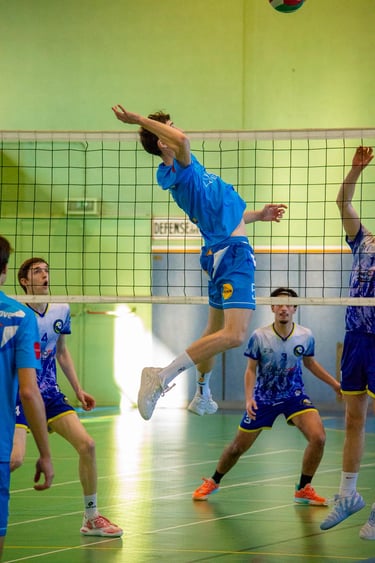 Un grand merci à nos talentueuses photographes, Floriane Siéper et Morgane Joncour, qui ont su capturer l'action de manière à ce que vous ressentiez presque l'excitation et l'énergie de la salle. Chaque image raconte une histoire – des échanges palpitants aux célébrations des points. Que ce soit un smash décisif ou une défense héroïque, leurs images illustrent parfaitement le niveau de compétition et de passion de nos joueurs. La qualité des photos nous permet de nous replonger avec joie dans l'ambiance de ce derby.